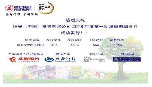 830日,德扑之星(中国)投资有限公司发行2018年度第一期超短期融资券,发行金额10亿元,期限为270天,主体评级AAA。最终发行价格4.15%,全场申购22.8亿,申购比2.28倍。